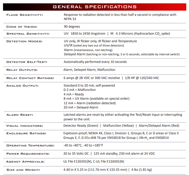 Model F120-R30 được tích hợp trong vỏ nhôm chống cháy nổ hai mảnh, không chứa đồng, được hoàn thiện bằng màu đỏ đậm để dễ dàng nhận dạng như một đầu báo lửa và phù hợp để sử dụng trong các khu vực “được phân loại” thường tồn tại nồng độ khí dễ cháy. Vỏ thép không gỉ tùy chọn cũng có sẵn.